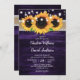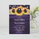 Esta morada rústica morada con girasol y fondo de madera de pino es perfecta para invitar a sus invitados a su fiesta de bodas rústica morada inspirada en las flores de girasol. Plantilla fácil de personalizar.