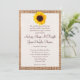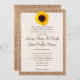 Una invitación rústica a una boda rústica presenta un diseño impreso en burún con un girasol impreso en la parte superior. Esta invitación rústica es perfecta para una boda rural. Añada los detalles de su propio boda a esta invitación rústica. La parte trasera de la invitación también tiene el diseño de burlap. Utilice el "Personalizar" si desea mover cosas, cambiar los colores de la fuente o agregar o eliminar líneas de texto.