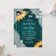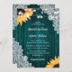 Esta elegante invitación a la boda de girasoles con girasoles y encaje rústico sobre un fondo de madera de granero es perfecta para invitar a sus invitados a su rústica fiesta de boda verde azulada inspirada en los girasoles. Plantilla fácil de personalizar. Diseño de personalizable completo.
