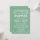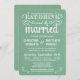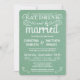 Coma, bebe y cásate — Invitaciones rústicas de casamiento al estilo vintage — Agrega los nombres de novias y novios e información de bodas en esta plantilla fácil de usar. Brillantes, rollos ondulados y la tipografía de la moda antigua en blanco radiante sobre fondo verde burlap de la menta sabrosa. Elegante pero divertida y caprichosa caligrafía de estilo de pizarra retro puede ser modificada para su tema formal o semiformal de boda. El moderno estilo informal es perfecto para bodas contemporáneos de moda con un toque divertido de encanto sofisticado para las parejas tradicionales. Póngase en contacto con nosotros para obtener ayuda sobre la personalización si necesita espacio adicional para los detalles de su boda.NOTA Se muestra en tarjetas de invitación estándar tamaño A7. Otros tamaños y estilos disponibles.