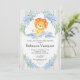Celebra la llegada de tu nuevo paquete de alegría con esta moda de Invitación Personalizada de Baby Shower con León Floral. Con un lindo león bebé y hermosa floral azul. Personalice esta impresionante invitación con los detalles de su ducha de forma fácil y rápida, simplemente pulse el botón personalizar para reorganizar y formatear el estilo y la ubicación del texto. (c)El estudio Happy Cat