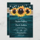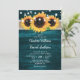 Esta verde azulada y rústica invitación a celebrar bodas con flores de girasol y telón de fondo de madera de pino es perfecta para invitar a sus invitados a su verde azulada fiesta de bodas rústica inspirada en las flores de girasol. Plantilla fácil de personalizar.