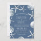 Invitaciones de la boda del dólar de las estrellas de mar y de arena del tema de la playa de los azules marinos.