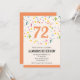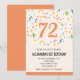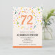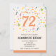 Invitaciones sencillas de cumpleaños número 72 con confeti, tipografía de caligrafía moderna, clásico elegante femenino colorido de hito