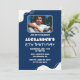 Invitaciones simples para los 8 años Boy Photo Navy Blue Modernismo