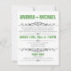 Invitaciones modernas diseñadas para bodas en las que la pareja tiene una boda de destino o una pequeña ceremonia de boda privada, y solo invita a los invitados a la celebración de la recepción. La tipografía en la parte delantera de estas invitaciones está diseñada en fuentes verdes y grises, y la parte trasera es un verde sólido con texto blanco opcional para posible información de RSVP.