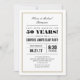 Invitaciones de fiesta de aniversario sorpresa con un diseño de marco blanco y dorado. Personalice el texto para usar en cualquier aniversario de año.