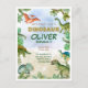 Pisa fuerte, ruge y celebra como un dinosaurio. Esta divertida y colorida invitación de cumpleaños tiene un tema de dinosaurios juguetones, completo con dinosaurios, exuberantes árboles prehistóricos, perfecto para el gran día de tu pequeño explorador. Personalizable con el nombre de tu hijo, edad, detalles de la fiesta y más, esta invitación establece el tono para una celebración dinamitante. Ideal para niños y niñas amantes de los dinosaurios, este diseño da vida a la diversión prehistórica. Personalízalo hoy y prepárate para rugir en el mejor cumpleaños de todos.