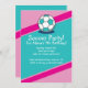 Invitaciones temáticas de la fiesta de cumpleaños del fútbol rosado y verde azulado de los chicas.