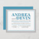Invitaciones solo para la recepción de boda con un diseño de tipografía azul y gris. (Dado lo precisamente alineado que está este diseño, se aconseja hacer clic en el botón naranja "¡Personalízalo!" para mover y cambiar el tamaño del texto según sea necesario). Estas invitaciones se utilizan cuando la pareja tiene una boda en destino o una pequeña ceremonia privada, y solo invita a sus invitados a la celebración posterior a la boda, la recepción.
