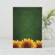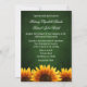 Invitaciones verdes de la boda del girasol de la pizarra---haga juego las tarjetas de RSVP y más encontraron abajo en esta página. Felicite su tema del boda del girasol con estas invitaciones que ofrezcan una textura verde de la pizarra como fondo con los girasoles vibrantes en la parte inferior del frente y de la parte posterior de cada invitación. Estas invitaciones del boda se fijan a de papel de tarjetas básico de alta calidad; sin embargo, usted puede cambiar la acción al lino, fieltro (grabó en relieve), reciclado, y varias sombras metálicas si usted quisiera bajo número 2 (eligen su estilo, tamaño y tipo de papel) debajo del naranja añaden al botón del carro. Una lista de los costes adicionales para un de papel de tarjetas más de lujo se exhibe también bajo esa opción. Cada invitación viene con un sobre blanco cabido. Vea las tarjetas a juego de RSVP que se casan abajo para terminar la habitación.