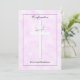 Esta hermosa invitación de confirmación incluye una cruz y una paloma en un fondo similar a una nube rosa junto con el nombre de su hija. La parte posterior de la invitación está disponible para los detalles de la invitación de confirmación de su personalizado. Copyright henishouseofpaper