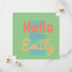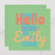 invita hola desde la plantilla Tarjeta de invitación saludo en color pastel en el interior, verde menta, naranja de coral, melocotón, azul para adolescentes o niños color claro divertido diseño estilo "palmsprings" estilo manantiales de palma estilo Fácil de personalizar. nombre estilo fuente personal, tamaño y colores se pueden cambiar. Elementos coincidentes disponibles.