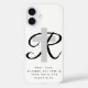 iPhone 16 funda con cruz religiosa y oración. Añade tu propio monograma personalizado y texto de la biblia, bendición o oración.