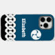 Este estuche de teléfono azul y negro está decorado con algunos elementos clásicos de diseños japoneses. La parte inferior incluye una cadena de yoshiwara blanca y un escudo mitsudomoe espiral que descansa cerca de la cámara. En el medio... ¡es tu propio nombre! Intenta teclearlo en la caja de arriba y mira el cambio de la imagen de previsualización.