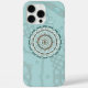 Este diseño de mandala presenta capas de motivos blancos, turquesa y marrones inspirados en las tejas celtas y los médndi indios, como las viñas, las cintas y las flores de loto.