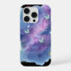 Una soñadora funda para teléfono con tonos de espacio de acuarela suave y mariposas brillantes.