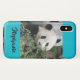 Este duro funda para el iPhone X es parte de nuestra colección "Pandas Gigantes", que incluye artículos de cocina a juego, otros regalos, tarjetas de felicitación y papel de envoltura. Qué maravilloso complemento para tu nuevo iPhone. Un regalo maravilloso para los amantes del panda. Este estilo tiene un fondo azul. Tipografía divertida. Foto original de Marcia Socolik, tomada en Chengdu, China. Todos los derechos reservados © 2017 Alan & Marcia Socolik.