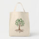 Esta bolsa de tote está diseñada con obras de arte hechas a mano que presentan un diseño inspirado en el Día de la Tierra "Vamos Verde". El diseño principal muestra un árbol hecho de símbolos de reciclaje y el mensaje "ir verde" mostrado en las raíces. En la parte posterior del diseño se incluye una lista de frases de captura de "Vamos Verde" para animar a otros a mantener limpio el planeta.