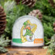 Patriotic Ireland Snow Globe featuring frosty snowflakes background falling behind the Irish Harp and leprechaun riding golf ball. Irish Flag style winter Christmas decoration, holiday gifts for patriots / sports fans.