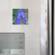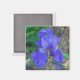Fotografía de cerca de una hermosa flor azul de iris impresa en un imán cuadrado de nevera.