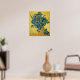 Este llamativo diseño presenta la obra maestra de Vincent van Gogh de 1890, "Jarrón con lirios", famosa por su poderosa teoría del color. Creado poco antes de que dejara el asilo en Saint-Rémy, esta obra presenta un exuberante ramo de lirios azules oscuros sobre un fondo amarillo brillante y soleado. El uso magistral de Van Gogh de colores complementarios crea una vibrante tensión visual que capta la mirada del espectador. Los pincelazos audaces y arremolinados y el contraste dramático encarnan la altura del arte postimpresionista. Esta enérgica composición floral añade un toque de sofisticación clásica y brillo moderno a cualquier hogar o accesorio personal.