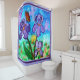 Mi pintura original del color de agua impresa en una cortina de ducha que ofrecía flores púrpuras del iris y una mariposa de monarca en la salida del sol fijó en un ajuste de la lavanda.