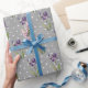 Diseño de acuarela floral de iris morado sobre fondo de punto de polka.