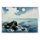 Isla de Kojima, onda grande. Impresión de Woodblock del japonés. La impresión muestra las ondas que se estrellan sobre rocas en la costa de la isla de Kojima.