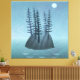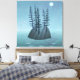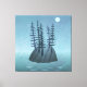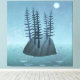 Una isla alejada en medio del océano, con pinos. La luna brilla en esta escena pacífica, ¡y el adentramiento llama la atención! Pintura marinera original de Nic Squirrell.