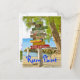 Foto de un asta de madera con coloridos carteles que representan a diferentes países de los que los muchos visitantes de Rum Point, Gran Caimán, han saludado.