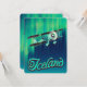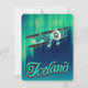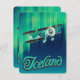 Afiche de viaje de estilo vintage de Islandia de las auroras boreales y un avión ligero que vuela por delante.