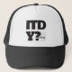 Un gorra oficial del camionero de itdy.org. Llévelo para la diversión, llévelo para la moda, llévelo para ayudar a separar las noticias sobre "ITDY?". Las letras principales dicen: "ITDY?". En letras más pequeñas, dice: "sepa el significado secreto itdy.org #itdy".