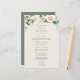 Nuestra colección de bodas florales con acuarela marfileña en flor de color marfileña presenta una vegetación acuarela delicadamente pintada, hojas de eucalipto, follaje botánico verde y flores de peonía blanca y marfil. Personalice estos elegantes menús de cena de la recepción de bodas con su selección de comidas, con sus nombres en la parte superior.