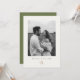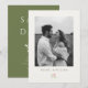 Whimsical and chic. This trendy wedding save the date card features a lovely blush pink watercolor floral illustration and couple photo, alongside a contemporary set of fonts against a soft neutral ivory color at the front. Included at the back are couple initials, alongside a lovely floral rose illustration, against a sage green background.