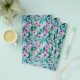 Una sábana de envoltura de jabón con un patrón de color rosa y verde.