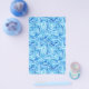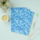 Una hoja de envoltura de jabón con un patrón abstracto de olas de color azul acuático.