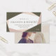 Diseño de boletos Jack & Jill completamente personalizable en un diseño geométrico hermoso y moderno. Caqui silenciado con tonos rosas. Foto opcional al revés. Hay otros colores disponibles.