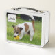 La foto es de un Fox Terrier masticando su bola con el nombre de Jack