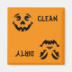 Limpio o sucio, usa este divertido imán para saber si es hora de llevar el lavavajillas o de guardar los platos. Puede cambiar el color de fondo haciendo clic en el botón "Personalizar" y, a continuación, seleccionando Editar: fondo. Este diseño es perfecto para una decoración de temporada de Halloween. Los imanes del lavavajillas hacen estupendos tokens para el agua del hogar o calcetines para el abastecimiento.