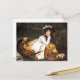 James Tissot Young Lady en una postal de barco. Pintura de aceite sobre lienzo de 1870. El artista francés James Tissot presentó con frecuencia a hermosas mujeres jóvenes en su obra de arte. El Young Lady in a Boat representa una morena de bonito vestida con un vestido victoriano blanco, en un pequeño bote estacionado entre carrizos al borde de un lago. La mujer sujeta su mentón en la mano y sostiene un abanico amarillo en el otro. Ella está drapada por una manta intrincada. Un grupo de flores silvestres amarillas y violetas se sienta delante de ella, y un tierno pequeño pug se sienta al timón del bote. Un bonito regalo para los amantes de Tissot, del arte victoriano y de las pinturas de barcas antiguas.