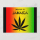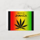 © Sunny Mars Designs. Postal jamaiquina de color negro rastafari rojo amarillo y verde - personalizable de Guay, carta de postales del Reggae jamaicano Rasta Leaf personalizado o postal con una silueta de una hoja rastafari con colores de Jamaica verde, amarillo y rojo.
