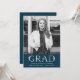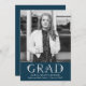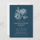Moda y elegantes invitaciones a fiestas de graduación fotográfica con la foto preferida de tu graduado senior, fuente botánica vintage y ramo de flores. Personaliza las invitaciones de la fiesta de graduación de la marina al revés con los detalles de tu fiesta para un diseño que impresionará a los invitados.