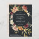 Nuestro moderno jardín floral Moonlight ahorra los marcos de la tarjeta de fecha tus detalles clave del boda, incluyendo fecha y ubicación, dentro de un frondoso borde botánico de mamáes de rosas acuarelas, hojas verdes y follaje. Dustos tonos otoñales de burdeos, marsala, pop de color verde y marfil contra un fondo suave de color negro. Personalice sus nombres, fecha de boda, ubicación y sitio web del boda utilizando los campos proporcionados.