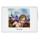 Tarjeta hecha para la seño en fin de curso, ha quedado estupenda. Dudé si escoger la mate o la de brillo, y creo que acerté con la mate, pues la foto no era muy buena