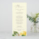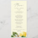 Esta moderna carta de bodas amarillos con limoneros es perfecta para un boda primaveral o de verano. El diseño rústico mediterráneo presenta limones acuáticos brillantes y hermosos con flores blancas bohemias y elegantes hojas verdes. Este menú se puede utilizar para la recepción de bodas, la cena de ensayo o cualquier evento.
