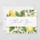 Esta moderna tarjeta de agradecimiento amarilla de limón jardín es perfecta para un boda de primavera o verano. El diseño rústico mediterráneo presenta limones acuáticos brillantes y hermosos con flores blancas bohemias y elegantes hojas verdes. Personalice la parte posterior de la tarjeta con sus nombres y un mensaje de agradecimiento. Como alternativa, deje en blanco la sección de plantilla de mensajes de agradecimiento para escribir a mano una nota personalizada en cada tarjeta después de su llegada. Estas tarjetas se pueden usar para un boda, una ducha de novia o cualquier evento especial.