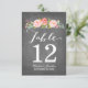 Tarjeta de Número de Mesa. Ideal para Bodas o cualquier ocasión. Esta tarjeta cuenta con hermosas flores pintadas con acuarela y una mezcla de tipografía moderna, todo sobre un fondo de pizarra de moda.
