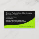 Audaz diseño de tarjetas de visita de diseño de césped moderno y servicios de paisajismo creado con una audaz forma de fondo verde y un diseño personalizado clásico para un paisajista que también se ocupa del cuidado y mantenimiento del césped.