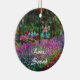 "Jardín de Monet en Giverny", del artista francés del impresionismo, Claude Monet, en 1900. Para cuando Monet adquirió su tierra y jardín en Giverny a finales de siglo, era una celebridad y se llamaba "gran paisajista francés". En ese momento tenía 56 años y paseaba por su propiedad con su cigarro que se estaba desplomando. Le gustaba discutir la propagación, los injertos y los esquemas de color con su pequeño grupo de jardineros. Su jardín fue acondicionado como un jardín de campo francés clásico con pérgolas rosas sobre pasarelas de grava. A medida que pasaba el tiempo, construía invernaderos e importaba plantas raras y arbustos de todo el mundo. Le gustaba recorrer su jardín varias veces al día. Era un hombre fuerte y un pintor fuerte, con la fortaleza de hacer la mayor parte de cualquier línea de trabajo en su vida. Luego comenzó a expandirse comprando más tierra con un estanque y regado por los Ru. Él tenía una gran admiración por todo lo japonés. A medida que expandió su tierra aún más, hizo que el estanque fuera más grande y se construyó un puente japonés sobre él, añadiendo nuevas nenúfares, sauces llorosos y glicinia. En 1900 tenía 20 pinturas de su jardín. Dos años después trabajó en una larga serie de estudios y finalmente tuvo una exhibición lista para 1909 llamada "Les Nympheas, Paysages d'Eau".